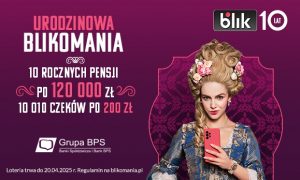 - 10 010 czeków BLIK, każdy o wartości 200 zł
